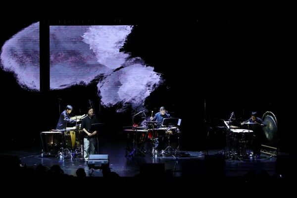 音乐会开场曲目为瞿小松作曲的《定风波》,灵感来源于苏轼的同名词作,结合了包括传统中国打击乐器、西方现代打击乐器在内的多种打击乐器,通过丰富的音色和节奏变化,创造出多层次的听觉体验,展现了丰富的表现形式和艺术内涵。随后上演的《Sand Box》充满互动性、趣味性,四位演奏者扮作超级马里奥,以灵动的表演和精彩的演奏调动起现场的热烈气氛。