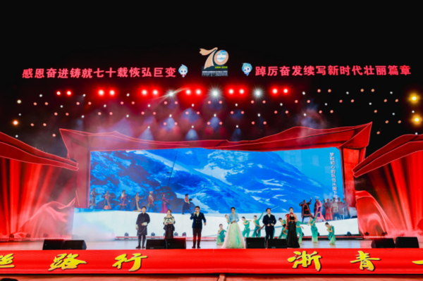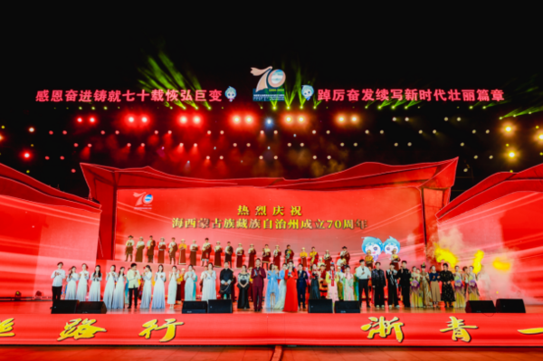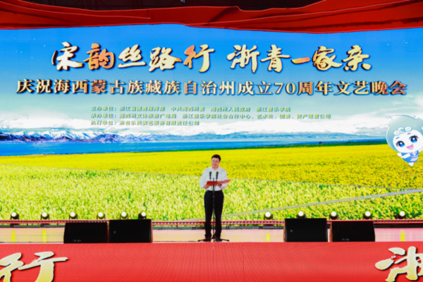 “宋韵丝路行 浙青一家亲”海西蒙古族藏族自治州成立70周年文艺晚会昨天在青海省海西州德令哈市举行。晚会以“山海相连”“大美不言”和“幸福家园”三个篇章,描绘了一幅浙青两省人文相融、民族团结的壮丽画卷,展现了浙江援建青海海西十四载,两地携手并进、共谋发展的深厚情谊。