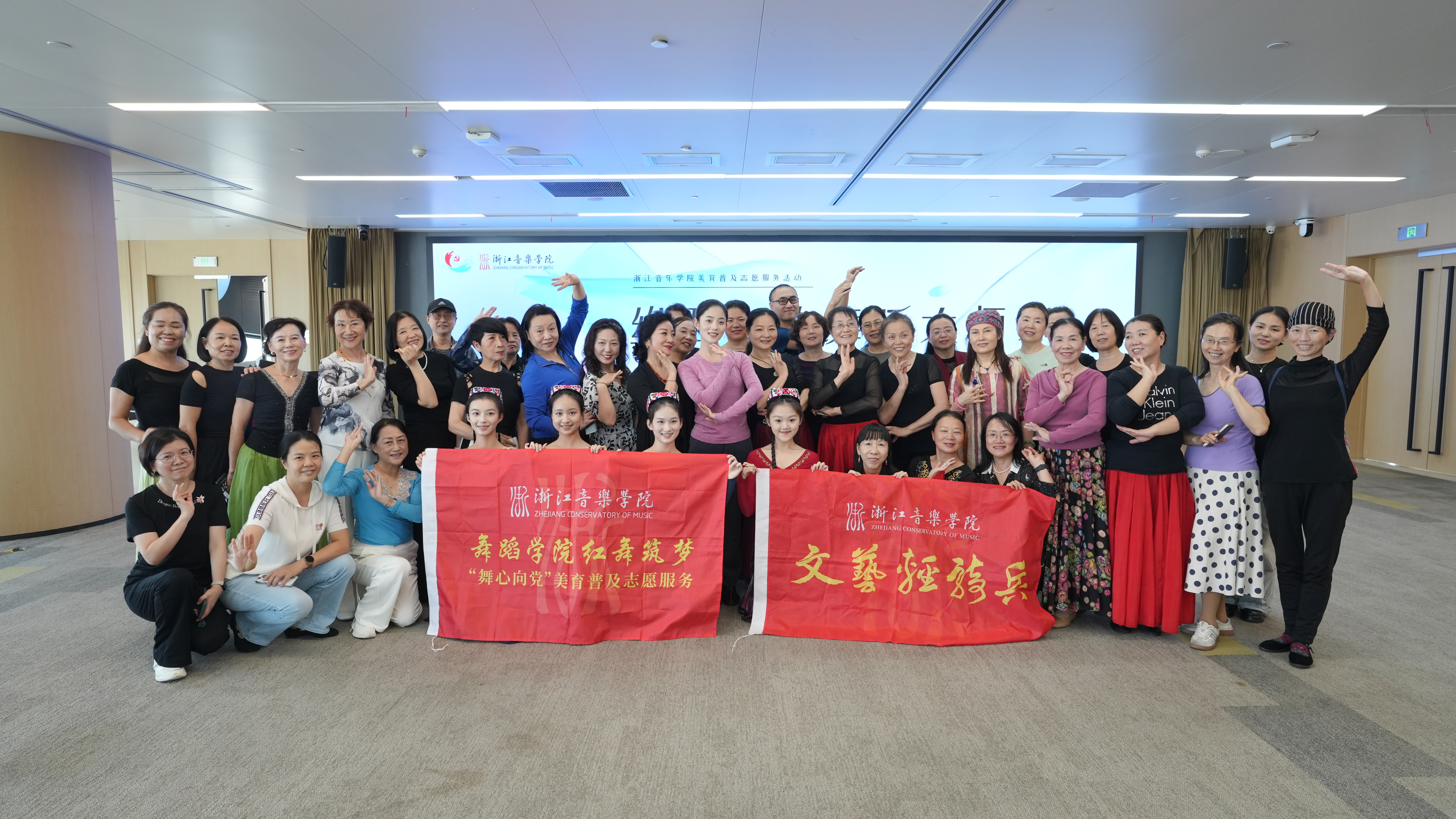 “舞心向党”美育普及是舞蹈学院党总支“红舞筑梦”党建品牌系列活动之一,2024下半年计划开展中国民族民间舞、现当代舞、古典舞、芭蕾舞等大师课及汇报演出10场。本次活动是舞蹈学院党总支深入学习宣传贯彻党的二十届三中全会精神、落实美育浸润行动计划的生动实践。舞蹈学院党总支将继续深入把握学科专业发展特色,充分发挥师生力量,为高水平一流音乐学院建设、推动浙江文化强省建设作出积极贡献。