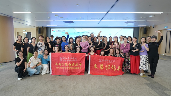 近日,由舞蹈学院与杭州市党群服务中心联合主办的“红舞筑梦——‘舞心向党’”美育普及活动正式回归。本次活动主题为维吾尔族舞蹈大师课,课程由舞蹈学教研室副教授钟冰洁主讲。
