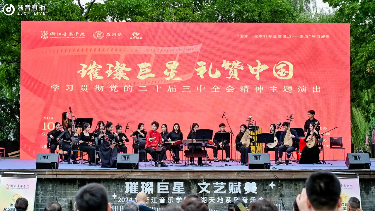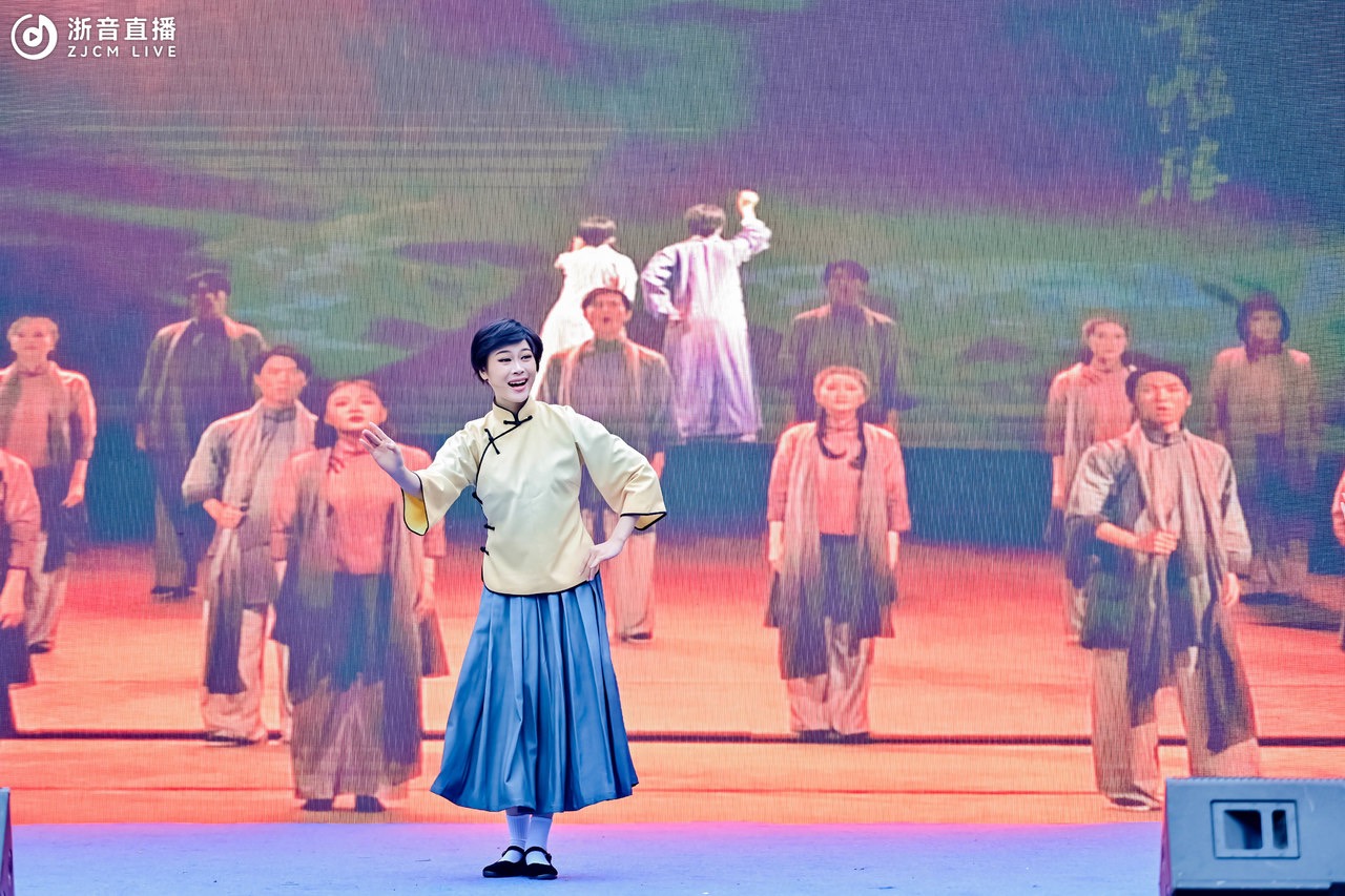 演出以“光影留声”为主线,分为“光影留声”“红色记忆”“时代新篇”三大篇章,涵盖戏曲、歌曲、舞蹈、朗诵、影像等多种艺术形式,回顾了中国电影和戏剧的发展辉煌。开场的器乐合奏《夜深沉》震撼人心,《渔光曲》《天涯歌女》《四季歌》等影片中的歌曲让人们重回光影流转的时代记忆。戏剧系国家艺术基金资助的大型原创越剧《霞姑,霞姑》片段、《情探》经典选段、昆曲《游园惊梦》和京剧《杜鹃山》片段的精彩演绎,让观众沉浸于传统艺术的深厚韵味中,同时又感受到音乐剧的新潮活力。戏剧系师生将电影音乐与戏剧深度融合,运用丰富的艺术表达,用实际行动践行文艺赋美的社会责任,不仅让观众深刻感受到艺术的力量,更向大众传递了文化的厚重与温情。