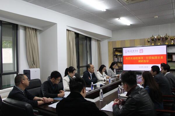 11月5日,校党委副书记王均寅,党委委员、宣传部部长、教师工作部部长施莹一行就宣传思想和学生工作方面来国乐系开展调研,学工部、研工部、校团委等部门负责人参加调研。国乐系班子成员、各党支部书记、辅导员和教师代表参加会议。