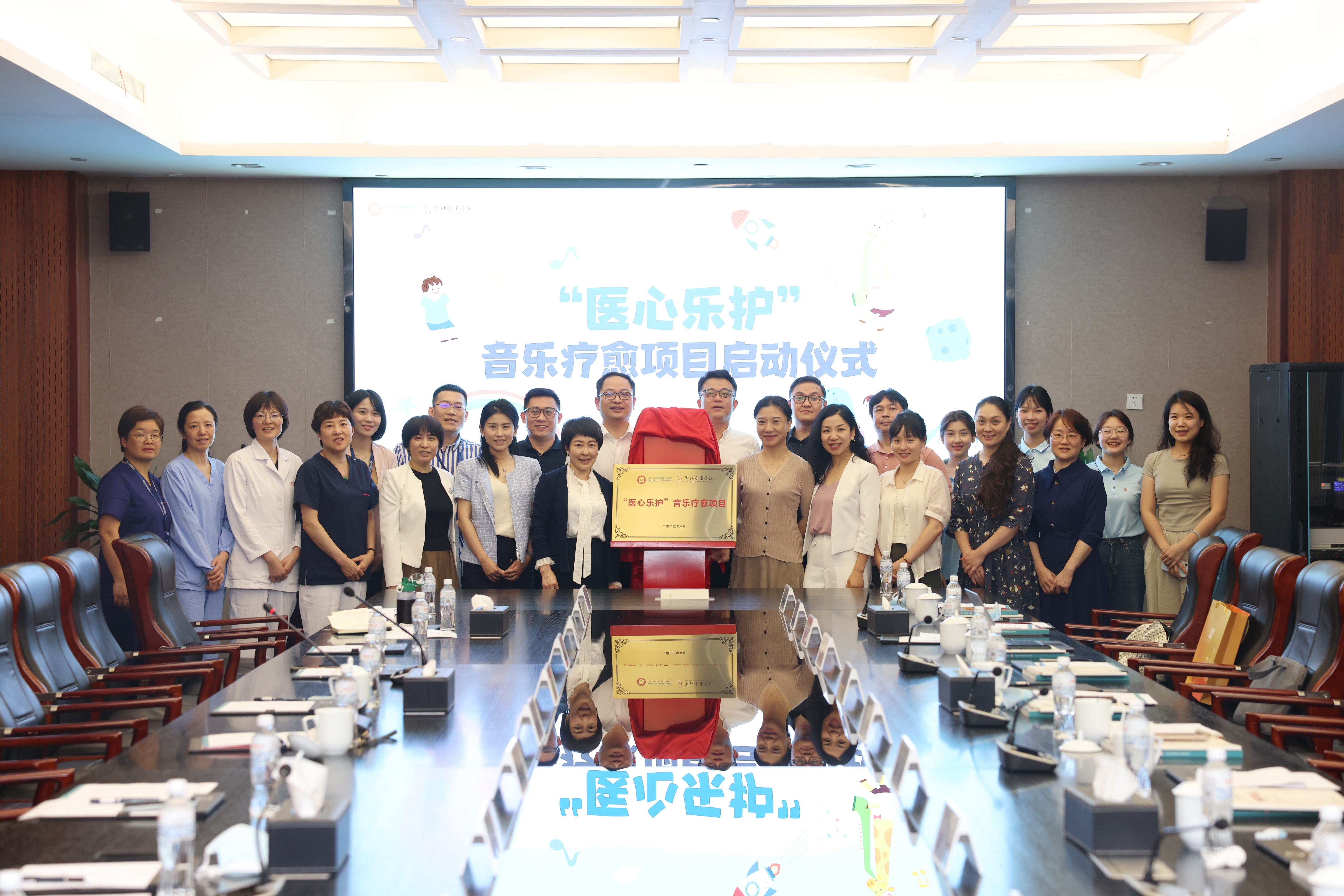 2023年6月,学校与浙江大学医学院附属儿童医院、杭州市教育局共同启动“医心乐护”音乐疗愈项目暨“文艺赋美·音乐疗愈角”品牌,打造医疗人文高质量服务载体,推动医校跨学科产学研合作与协同育人,培育学科发展的新增长点。2024年4月,双方还启动了“精神共富联合体”建设。“医心乐护”项目启动一年多以来,已开展志愿服务507场,服务时长1267小时,累计服务儿童7602名,开展个案音乐疗愈活动35次,帮扶对接人群245人,服务频次达1周1次,学校师生直接参与人数达285人。活动受到中央电视台、人民日报、浙江日报、浙江卫视等56家国家级和省市级媒体的广泛关注报道,其中“ICU的病房音乐会”更是受到央视新闻栏目的15分钟专题报道,有效提升了社会公众对音乐疗愈的认知度和普及度。
