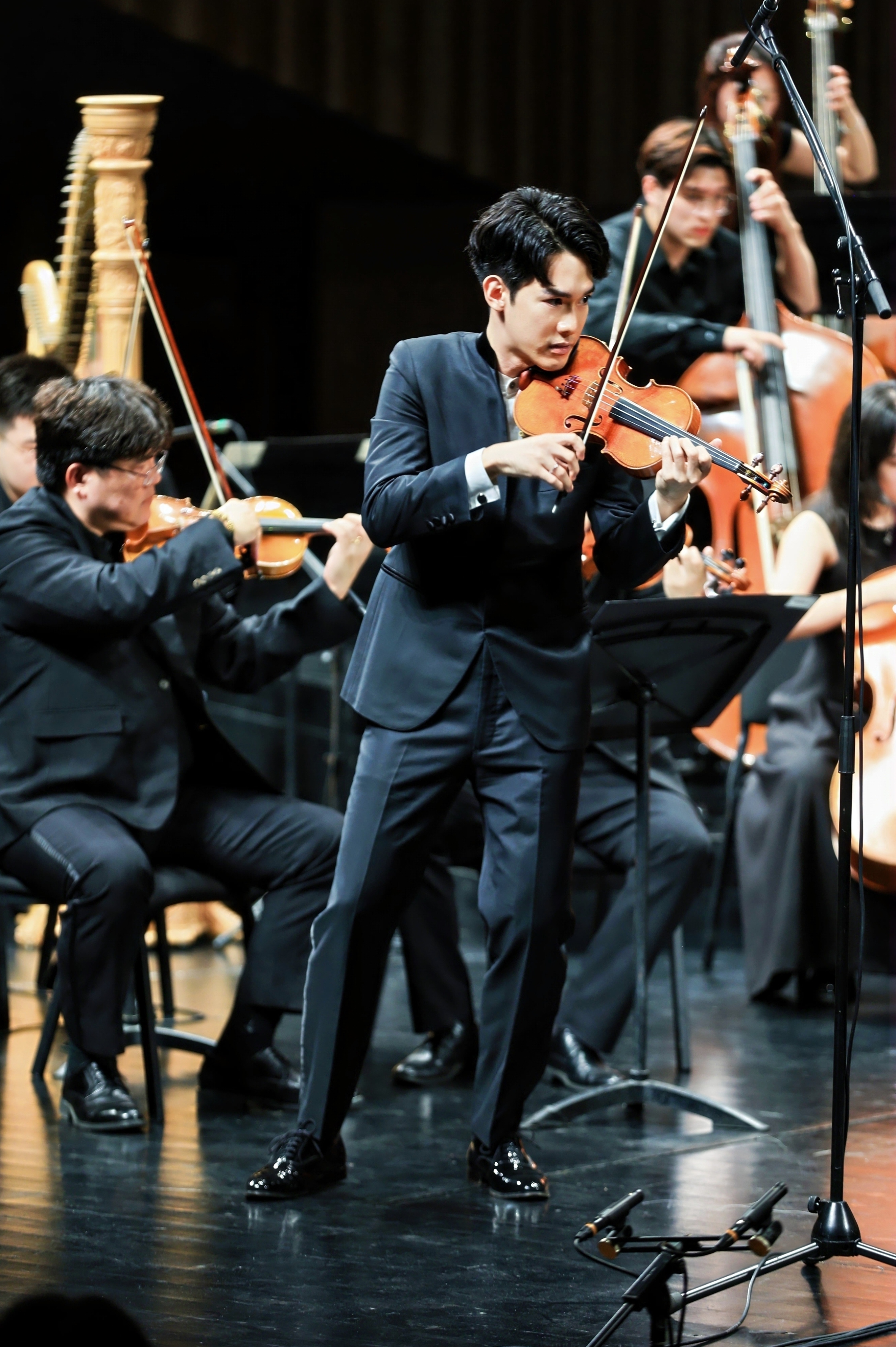 布鲁赫《苏格兰幻想曲》(为小提琴与乐队而作)带领观众进入不同风格的音乐情感世界。这部作品巧妙地将多首优美而哀婉的苏格兰民歌主题融入传统的协奏曲框架。小提琴独奏演奏家林品任以极具歌唱性的旋律线条贯穿全曲,在幻想曲式的自由结构中展现出华丽技巧与情感表达的完美平衡。他以精湛的技巧和深情的音色,演绎出时而激昂豪迈时而如泣如诉的动听旋律,博得现场观众热烈喝彩。