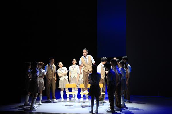 长亭外,古道边,芳草碧连天。一曲李叔同创作的《送别》在观众耳边萦绕,婉转悠扬、情深绵延的音乐道尽了万语千言。全剧充满浓郁的青春色彩,从我院学生的视角切入,探寻中国百年艺术教育的得失和教训,通过丰富的多媒体画面呈现出排练厅、雕塑群、图书馆等熟悉的校园场景,营造了浪漫诗意、励志动人的视觉氛围。故事主线清晰、舞台设计独特,人物矛盾突出、内心戏份活跃,可谓波澜迭起,扣人心弦。演员们声入人心的演唱、载歌载舞的表演,赢得现场观众的热烈掌声。观众们在观看中深深感受到作为中国现代艺术教育的先驱者和奠基人,民国艺术大师李叔同为后人留下了的那份取之不尽、用之不汲的艺术瑰宝,体会到在李叔同先生倡导的“学堂乐歌”精神下,浙音人正将“尽善”的理念,渗透到学院教育教学、学生成长成才等方方面面,以精益求精的生活态度、真善为美的处事方式,促进学院跨越式发展。
