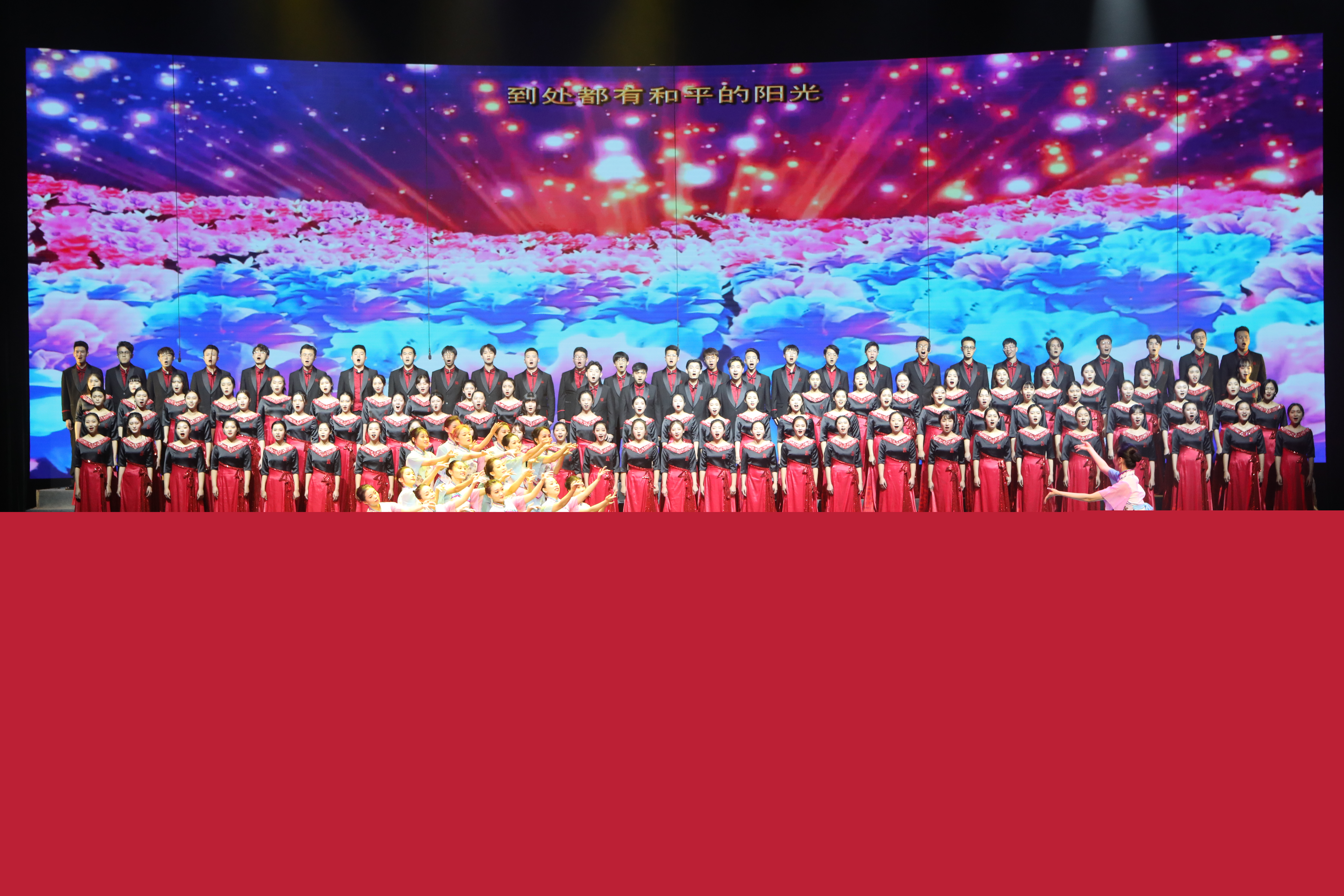 晚会在大型歌舞《我的祖国》中拉开帷幕,“一条大河波浪宽,风吹稻花香两岸”,在荡气回肠的合唱中,音教学子用拳拳之心、青春之声,向祖国深情告白: 我爱你祖国!