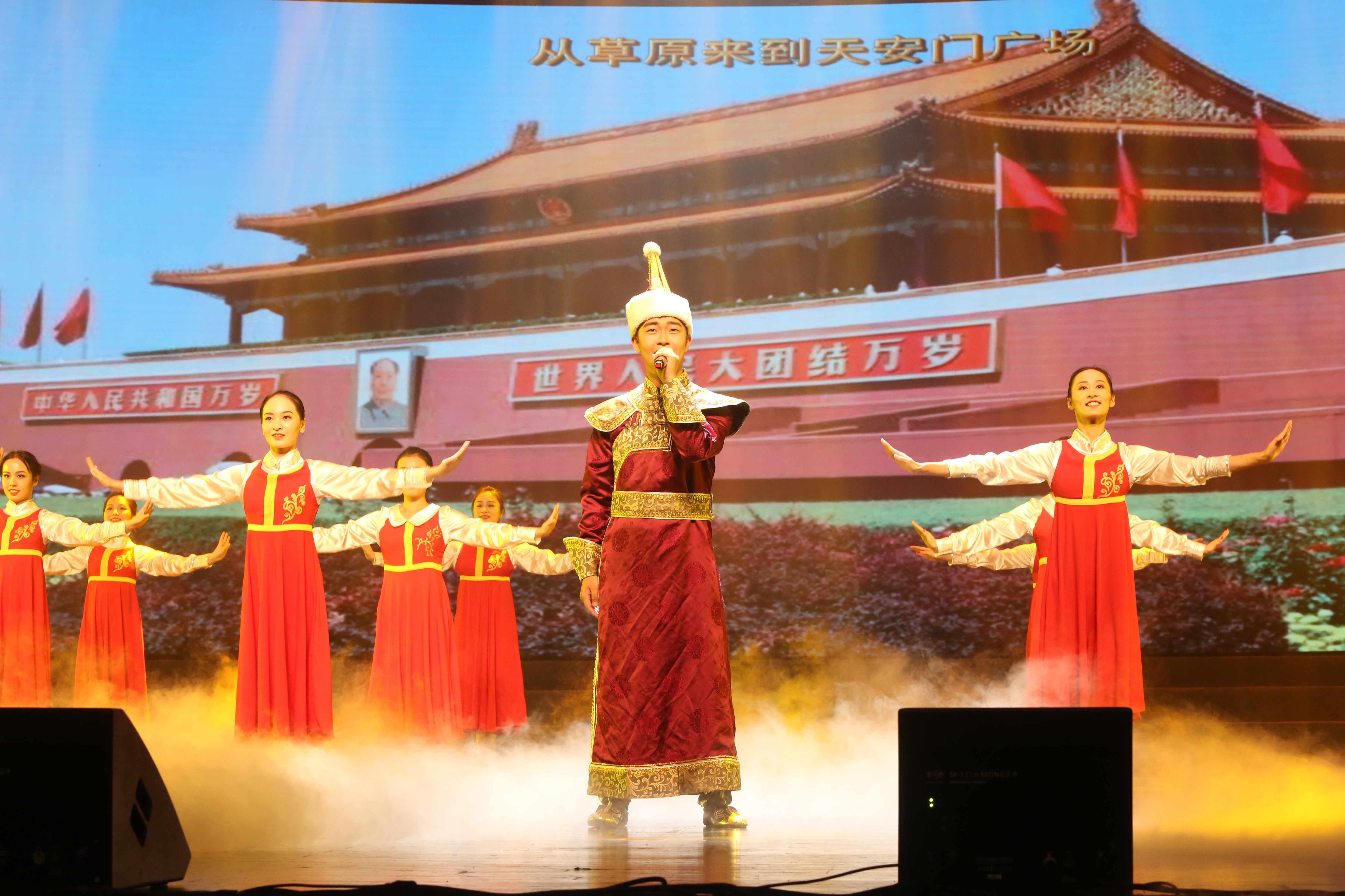 在全院上下扎实开展“不忘初心、牢记使命”主题教育之际,9月20日晚,我院音乐教育系主办的庆祝中华人民共和国成立70周年——《我的祖国》大型主题歌舞晚会在大剧院隆重举行,晚会集中展示了音乐教育系教书育人和立德树人新成果,用思想深邃、艺术精湛的文艺精品进行了红色洗礼。学院党委书记胡建新、党委副书记贾秀英,党政办公室、党委组织部、党委学工部、教务处等部门负责人,以及2019级全体新生、音乐教育系全体师生等近800人观看了演出。