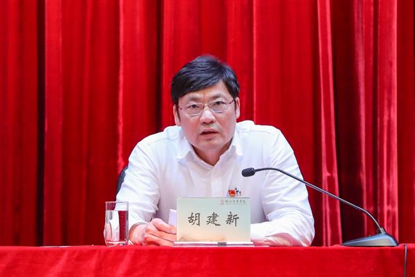 随后,胡建新还和大家谈到了“共产党人的理想信念”这个问题。他指出,共产党人的远大理想是共产主义,要时刻相信共产主义一定会实现。中国共产党人的共同理想是中国特色社会主义,要真正促进人的自由全面发展,就是要迈向共产主义。在谈到如何推进学院“高水平一流”发展时,胡建新强调,不能只坐而论道,也不能只有愿望而不思考实现路径。推进学院“高水平一流”发展更重要的在于立心与力行、实践与担当,在于事必尽善。全院上下一定要加强党的基层组织建设,以《中国共产党支部工作条例》为依据,扎实推进党支部标准化、规范化建设;要加强干部队伍建设,守初心、担使命,不断增强四个意识、坚定四个自信、做到两个维护, 使党员干部筑牢信仰之基、补足精神之钙、把稳思想之舵,始终保持党的先进性和纯洁性。