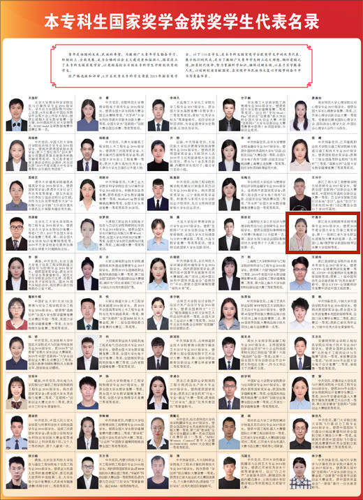 据悉,该名录从全国6万名荣获2019年国家奖学金的优秀本专科学生中选拔出110名优秀代表展示他们的风采,旨在激励广大青年学生树立远大理想,胸怀爱国之情,担负时代使命,努力掌握科学知识,锤炼过硬本领,以真才实学服务人民,以创新创造贡献国家,在实现中华民族伟大复兴中国梦的奋斗中书写青春华章。