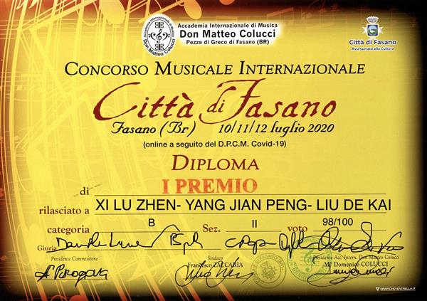 学院学生在意大利Fasano国际音乐比赛中荣获佳绩