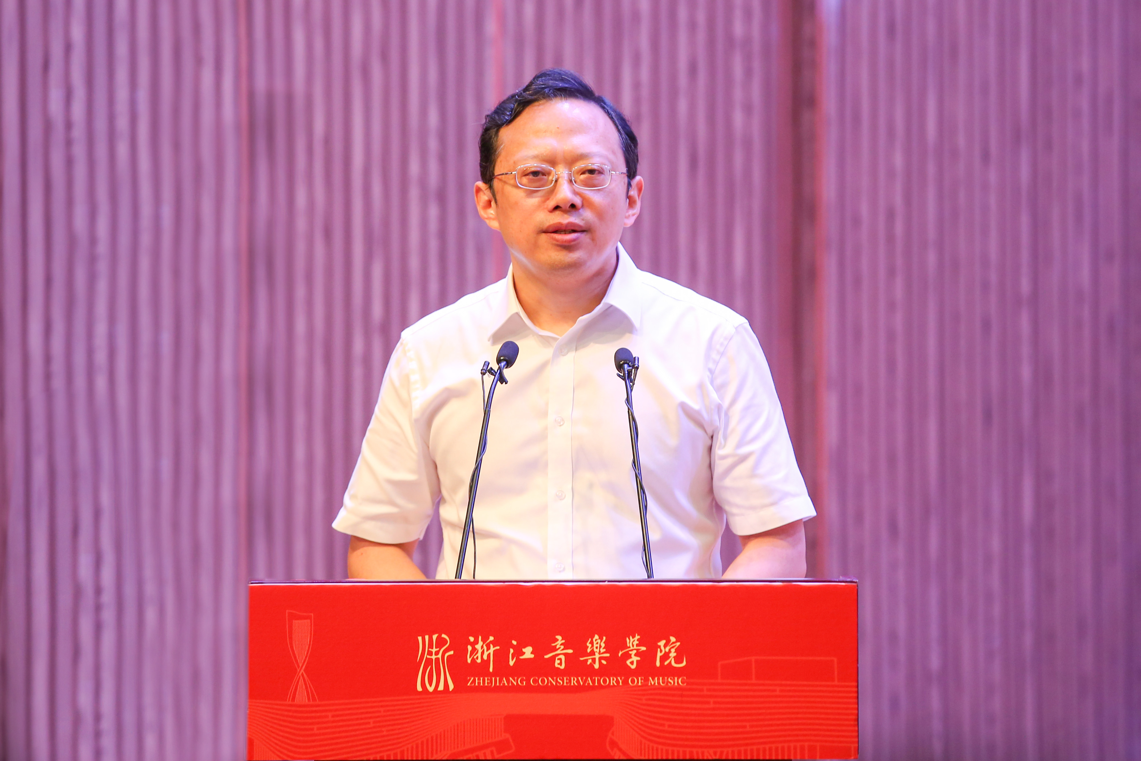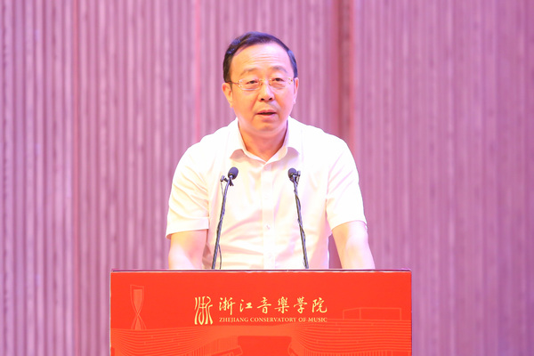 刁玉泉代表省文化和旅游厅对音乐教育学院、高等音乐教育研究所成立表示祝贺。他充分肯定了学校音乐教育系在学科建设、教学科研、人才培养、艺术实践、社会服务等各方面取得的骄人业绩,并希望音乐教育学院能以此为新起点,主动担负起中国高等音乐教育创新发展探路者、先行者的职责和使命,大力推进音乐教育学学科的内涵发展、特色发展和创新发展,不断深化人才培养模式改革,提高人才培养质量,为文化浙江建设和音乐教育事业发展培养更多更优秀的音乐教育工作者,为打造“中国音乐教育学”学科体系提供浙音方案、浙音样板。