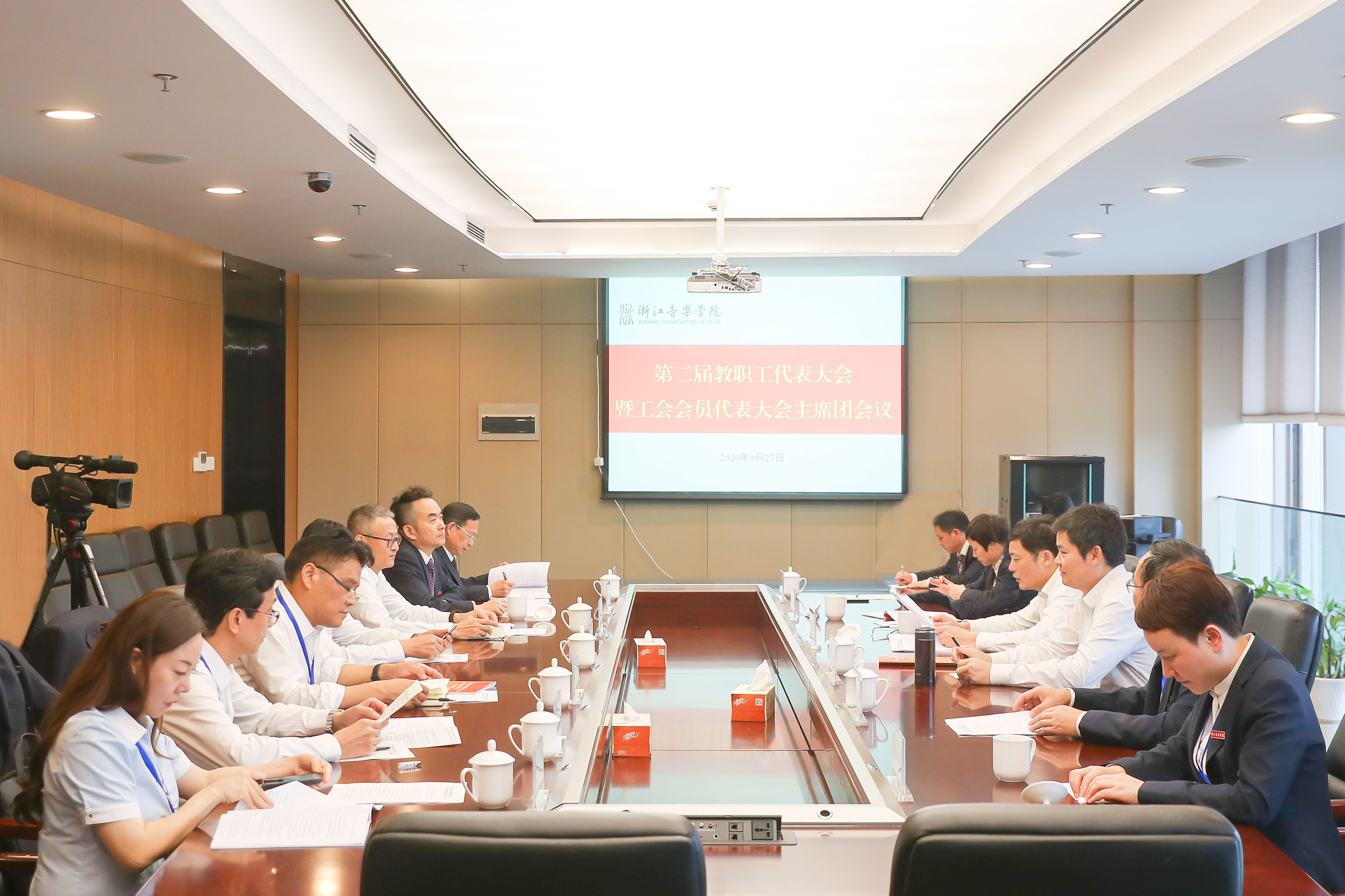 9月27日,学校第二届教职工代表大会暨工会会员代表大会第一次会议在图书馆报告厅隆重召开。省总工会一级巡视员、省教育工会主席赵祖地,省文化和旅游厅工会副主任周朝虹,学校党政领导班子成员胡建新、王瑞、张建国、贾秀英、杨九华、张伟波、应达伟、奚丽萍,103名“双代会”正式代表参加,校各民主党派主要负责人,非正式代表中层干部等应邀列席。