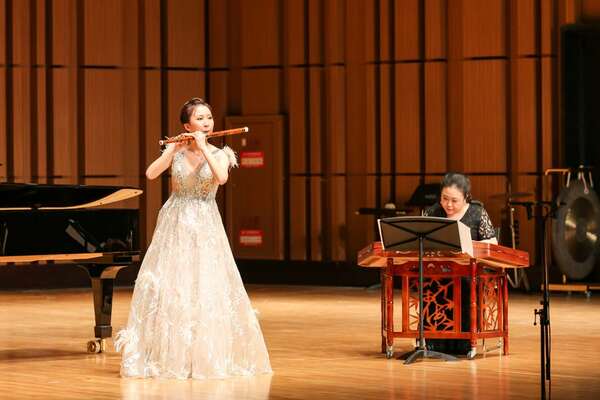 晚上19:30,金色绽放——全国获奖青年演奏家专场音乐会在标准音乐厅上演。本场音乐会由11首曲目组成,囊括传统作品、经典作品、原创作品、新创作品。音乐会在中阮独奏曲《葡萄架下》拉开序幕,青年演奏家薛淼所演奏的一串串琶音与具有新疆音乐节奏的组合将观众们引入风光旖旎的自然美景之中。随后,薛淼还带来了中阮演奏曲《孤芳自赏》,演奏家通过对作品的透彻了解,发挥想象和专注投入,将作品演绎得淋漓尽致。青年演奏家陈泓璇带来了作品《婺江风光》和《天际》,通过精彩的演奏,观众仿佛进入了无限的遐想,在光与影的交织中,感受迸发出顽强生命力。青年古筝演奏家刘乐用一首原创古筝作品《西湖秋月》呈现出当代环境下对“西湖文化”的多元理解,使观众们沉浸于典雅平和的传统基调与流光溢彩的时代气息相交融的意境之中。青年二胡演奏家王颖与青年古筝演奏家刘乐共同演绎乐曲《河南小曲》,两位以高超的技艺和默契的配合展现了该曲清新的旋律、浓郁的地方风味和丰富的演奏手法,生动地表现了河南人民对家乡的赞美和主人翁的自豪感。青年琵琶演奏家江洋演奏了琵琶协奏曲《云想花想》,精湛的演奏融合高超技艺于作品独特的创意和唯美的音乐之中,展现出如诉如泣、娓娓道来的深切情丝,深受观众的喜爱。青年打击乐演奏家尹飞带来了一首排鼓独奏曲目《楚汉决战》和一首全新形式的中国打击乐作品《横刀立马》,将现场气氛一度推向高潮。尹飞的演奏,鼓声隆隆,震撼人心,似乎使人穿越时空,重温千年前的那场智斗与血战。作品《横刀立马》压台出场,由演奏家尹飞与我校国乐系打击乐专业学生携手演奏。作品使用中、西方最具代表性的打击乐器,勾勒出一幅古代战争景象。音乐会在气势磅礴的打击乐中完美落幕,充分展现出青年演奏家的精湛技艺和动人风采。