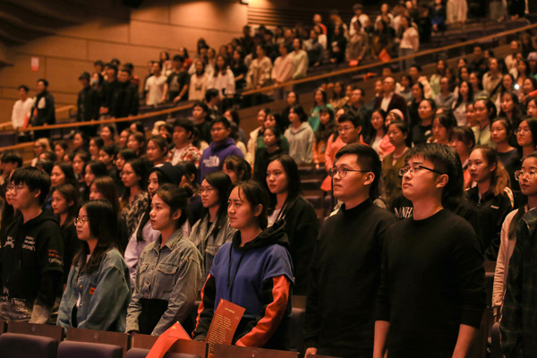 每场讲座环节结束后,全体师生在两位主讲嘉宾的带领和交响乐团的现场演奏下,先后齐唱《义勇军进行曲》和《我和我的祖国》,让师生徜徉在音乐海洋的同时,激荡起爱党爱国的浓浓情怀。音乐教育学院2020级研究生舒思航表示,通过这堂思政课,了解到爱国歌曲背后的故事,也更深刻地认识到“文艺是时代前进的号角”这句话的深刻内涵,更加深刻地认识到艺术工作者的历史使命与责任担当。“我认为当代大学生应该多了解中华民族的历史,要敬畏和热爱我们的国歌,热爱我们的民族,这是我们的责任与使命。”她说。