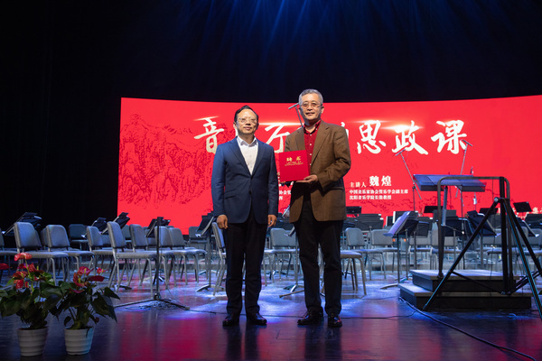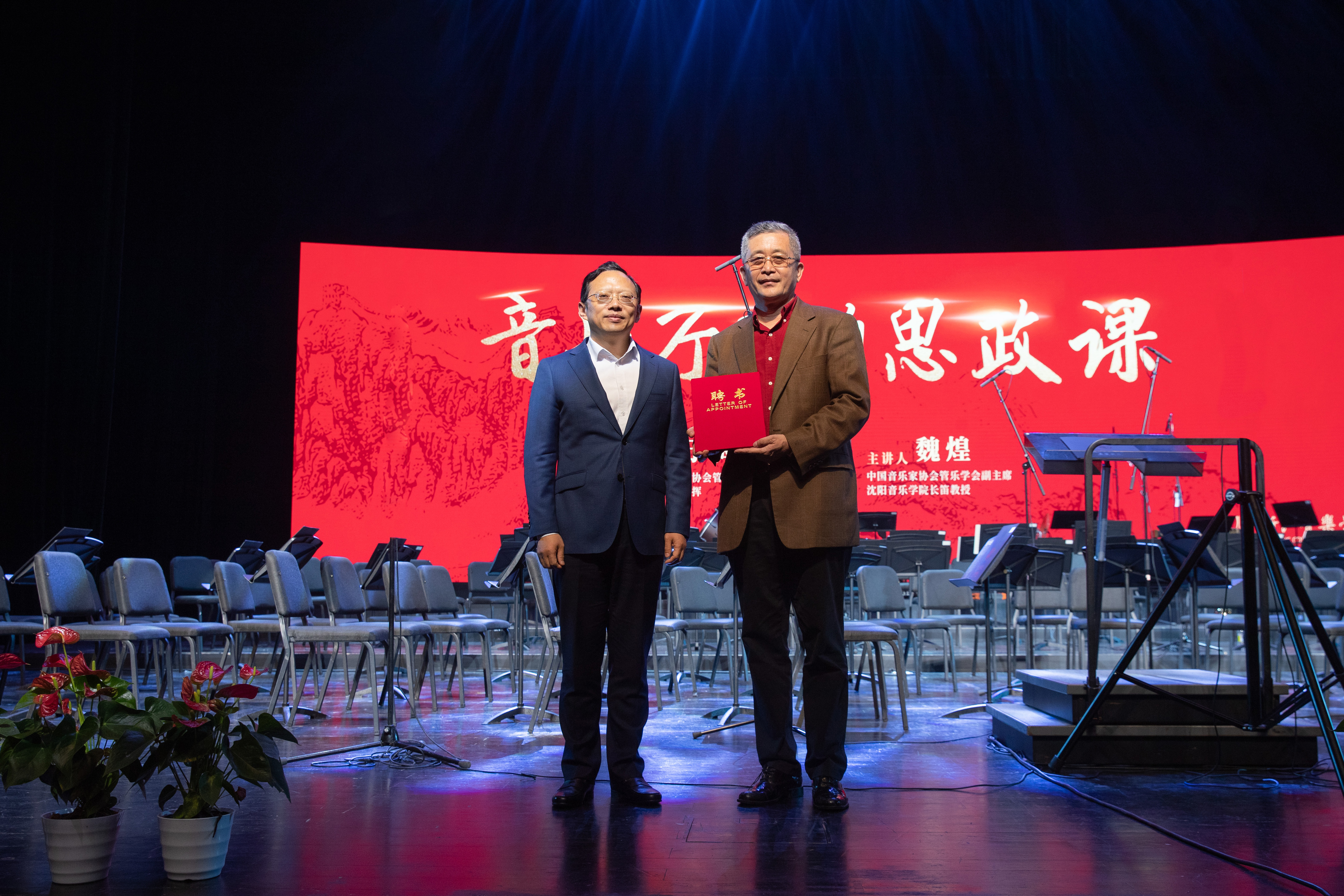 11月18日下午,一场别开生面的“音乐厅里的思政课”在学校大剧院拉开帷幕。此次思政课是学校、中国音乐家协会室内乐学会主办的第三届国际室内乐音乐节的重要组成部分,邀请了中国音乐家协会管乐学会主席、国家一级指挥、中国人民解放军军乐团原团长于海老师,和中国音乐家协会管乐学会副主席、沈阳音乐学院原副院长魏煌老师,为师生分别带来题为《我们的国歌》和《我和我的祖国》的学术讲座。校长王瑞出席讲座并为于海颁发学校客座教授聘书,党委副书记贾秀英主持讲座,有关部门和系(院、部)负责人、全体思政理论课教师、学生代表、党校学员等700余人参加。