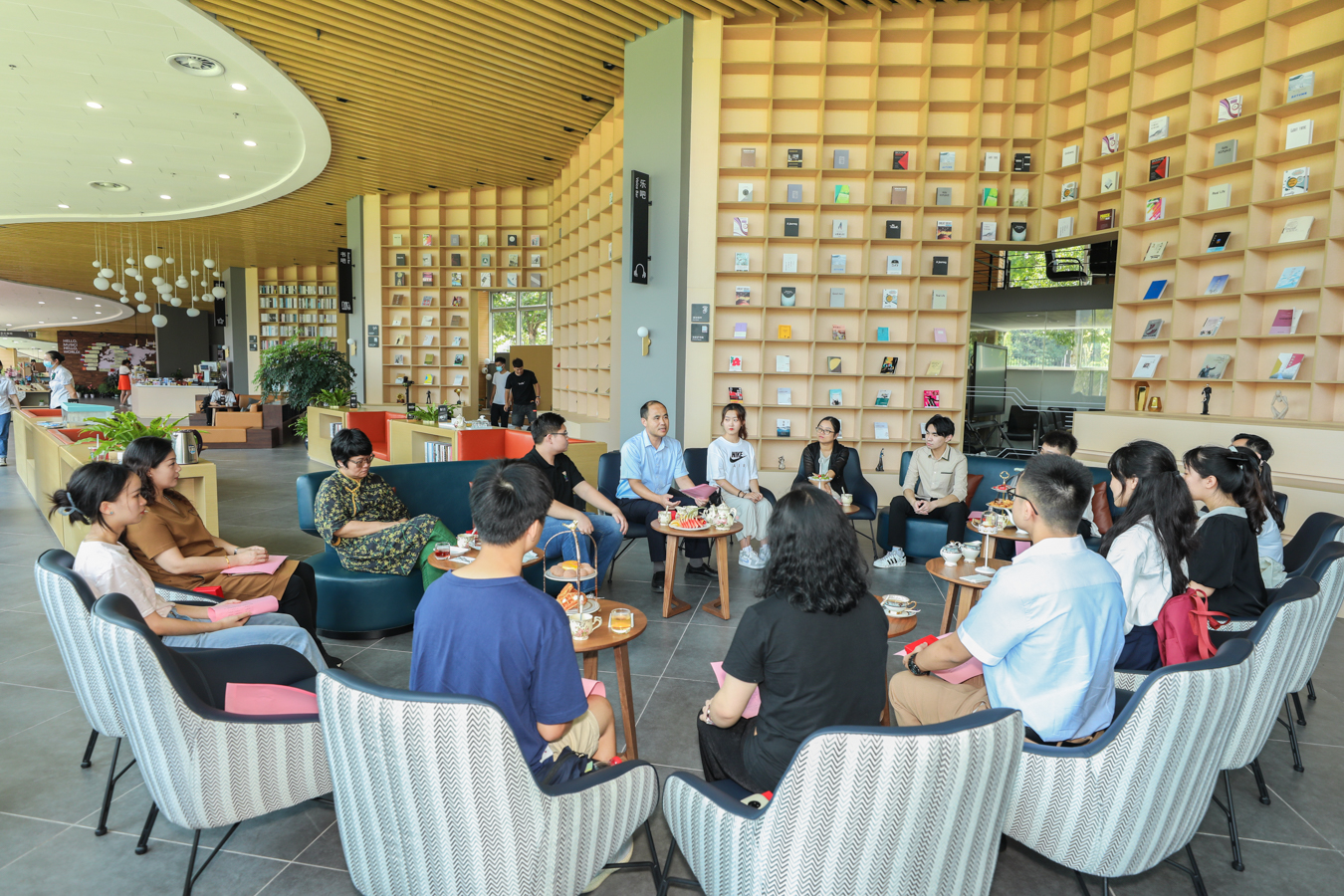 2021级新生座谈会在创意空间召开。党委副书记王均寅与大家展开深入交流,并为两名今天过生日的新生送上祝福。