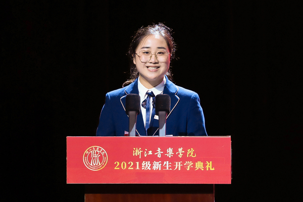 作为2021级研究生代表,音乐教育学院鲍雨露回顾了她本科在学院度过的充实四年,分享了新学习阶段的艺术梦想,并表示,我们是与新时代同向同行、共同前进的一代,要珍惜时光,用不畏艰难、锲而不舍的精神,让梦想和希望在浙音这篇沃土中生根发芽,将来为中华民族伟大复兴贡献自己的智慧和力量。