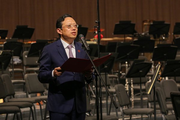 省文化和旅游厅党组书记、厅长褚子育,学院党政领导班子成员胡建新、王瑞、王均寅、杨九华、张伟波、汪洋,西湖区人民政府副区长缪凌蓉,相关部门负责人、艺创小镇主要负责人,以及“艺创奖”国际管弦乐作曲比赛评委出席音乐会。
