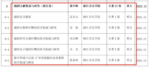 近日,浙江省哲学社会科学工作办公室发布了2023年“浙江文化研究工程”第一批立项课题名单。由学院戏剧学研究所特聘研究员蒋中崎老师领衔的《越剧文献集成与研究(剧目卷)》获重大课题立项,这是学院首次入选“浙江文化研究工程”课题。此外,学院孟凡玉、安怡、刘文峰、吴凡、张永明5位教师作为重大课题主要成员分别获得重点项目立项。