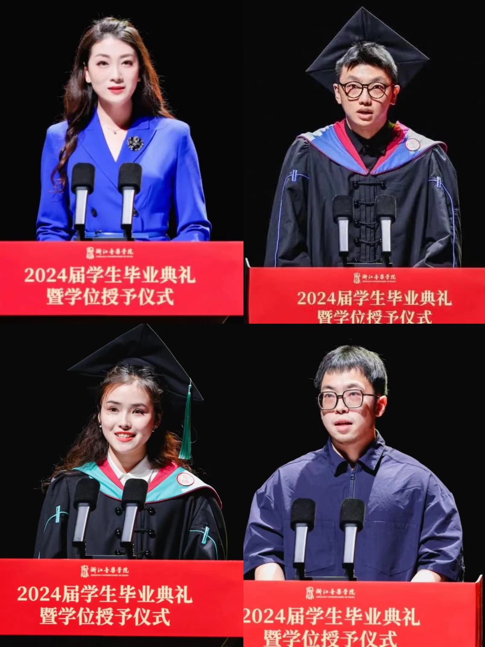 他表示,数智时代和新质生产力是一种因与果的关系。在座毕业生,正是最活跃、最基础的新质生产力要素,是具有创新能力、创造精神、适应新时代特点和发展要求的新一代的劳动者。大学生涯是短暂的,但浙音的创新文化和浙音精神对于养成浙音人特有的精神气质和人文情怀弥足珍贵,这也是学校给予同学们最好的教育和最宝贵的精神财富。最后,他寄语全体毕业生,要始终秉持浙音的创新文化和精神价值观,在意外中找寻希望,在挑战中找寻勇气,穿越喧嚣在寂静中找到真我,牢记数智时代艺术家的追求是数智力量、艺术精神与新质生产力,并且始终坚信,无论是农耕时代还是数智时代,那些彰显人性光辉、人格力量、饱含情感张力和人性温度的艺术精神与艺术作品将永远无可替代,并始终成为指引人类前行的灯火。