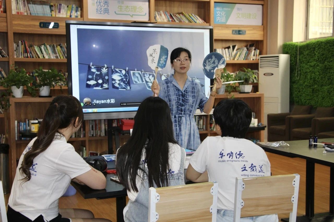 从细腻的剪纸艺术中,他们学会了如何将简单的纸张裁剪成栩栩如生的图案;在布画创作过程中,色彩与布料的巧妙结合,让每一幅作品都蕴含着独特的情感与故事;而蓝晒工艺则以其独特的色彩变化,让师生们领略到了化学与美学交融的奇妙;在“文旦花开”活动中,他们参与主题为“玉环,福地东海的精美封面”主题诗歌朗诵,为在场的观众深情地讲述了玉环的自然与人文。