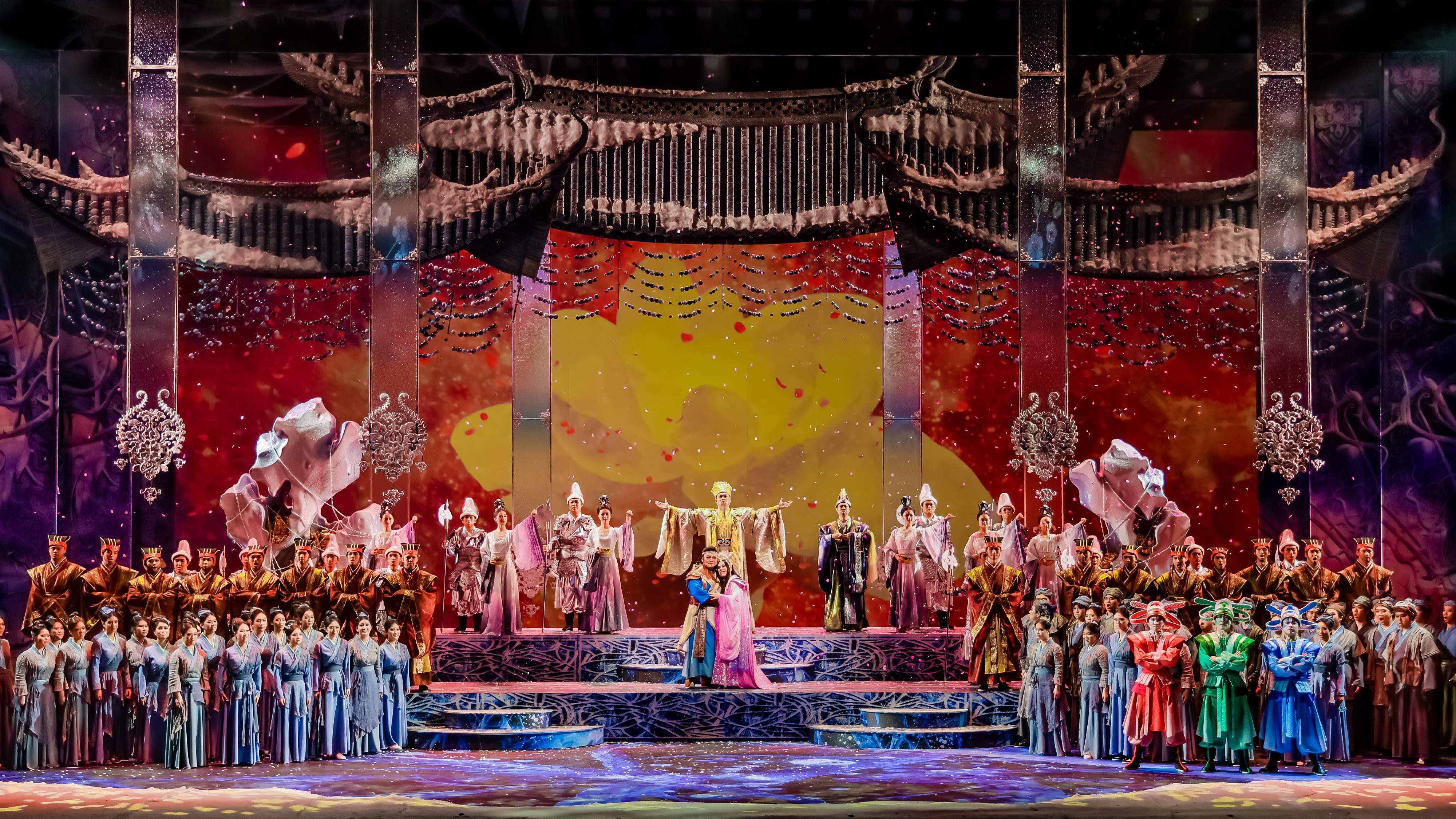 浙音版《图兰朵》演出气势恢宏,主创人员用精湛的诠释、震撼的视听,带领观众感受普契尼笔下的“爱之绝唱”。