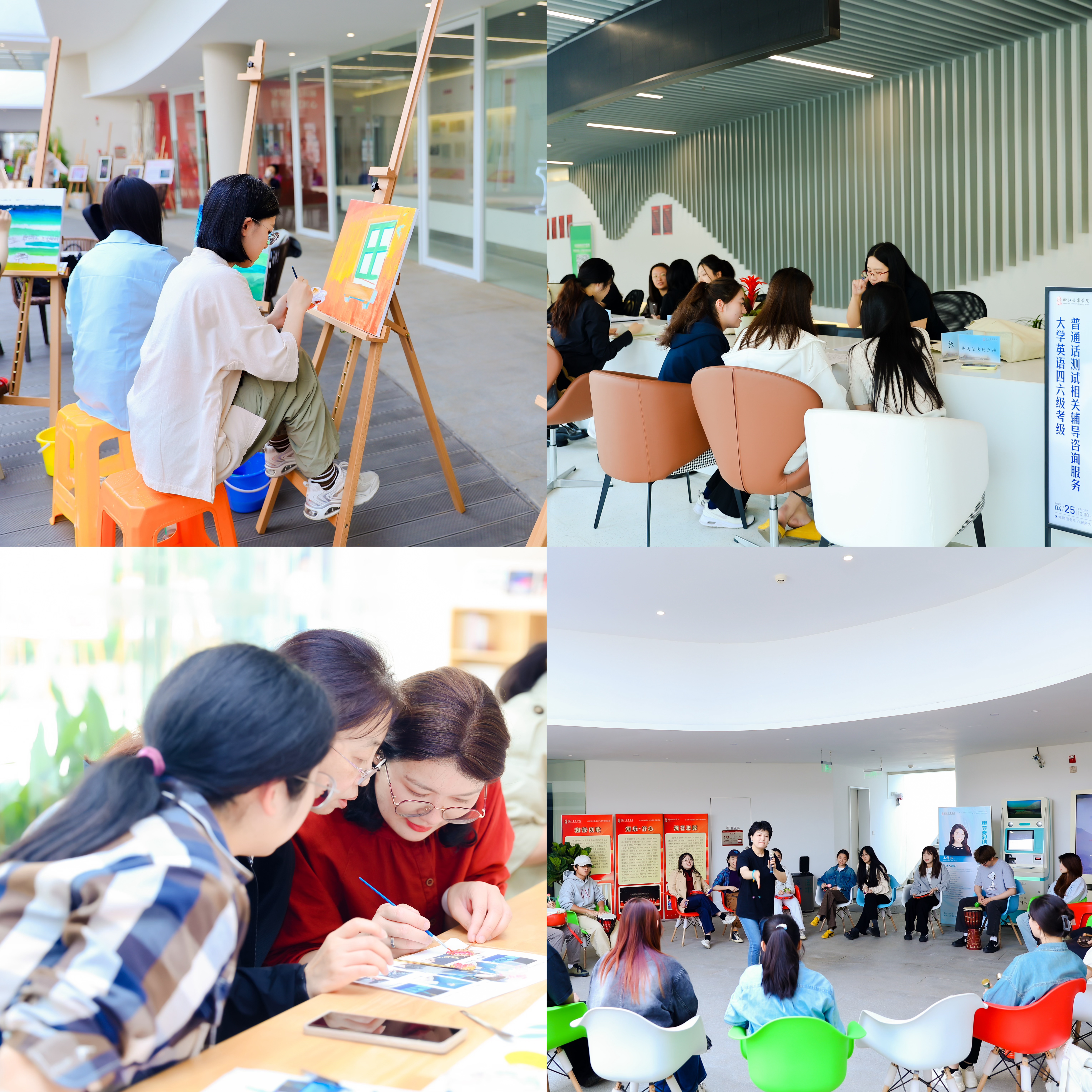 开幕当天,10场活动同步开启,师生们在此体验了螺钿镶嵌技艺、古风发簪制作、古法香牌手作等有趣的活动,感受传统手工艺魅力;在AI魔镜体验、鼓圈疗愈、“围炉乐话”、“撕下标签,勇敢做自己”、心灵读书会、撰写一封家书等心理活动中分享情感成长的经验,体验艺术疗愈,提高心理健康意识,提升心理调适技能;开展英语、普通话志愿咨询辅导,助力提升学生能力。