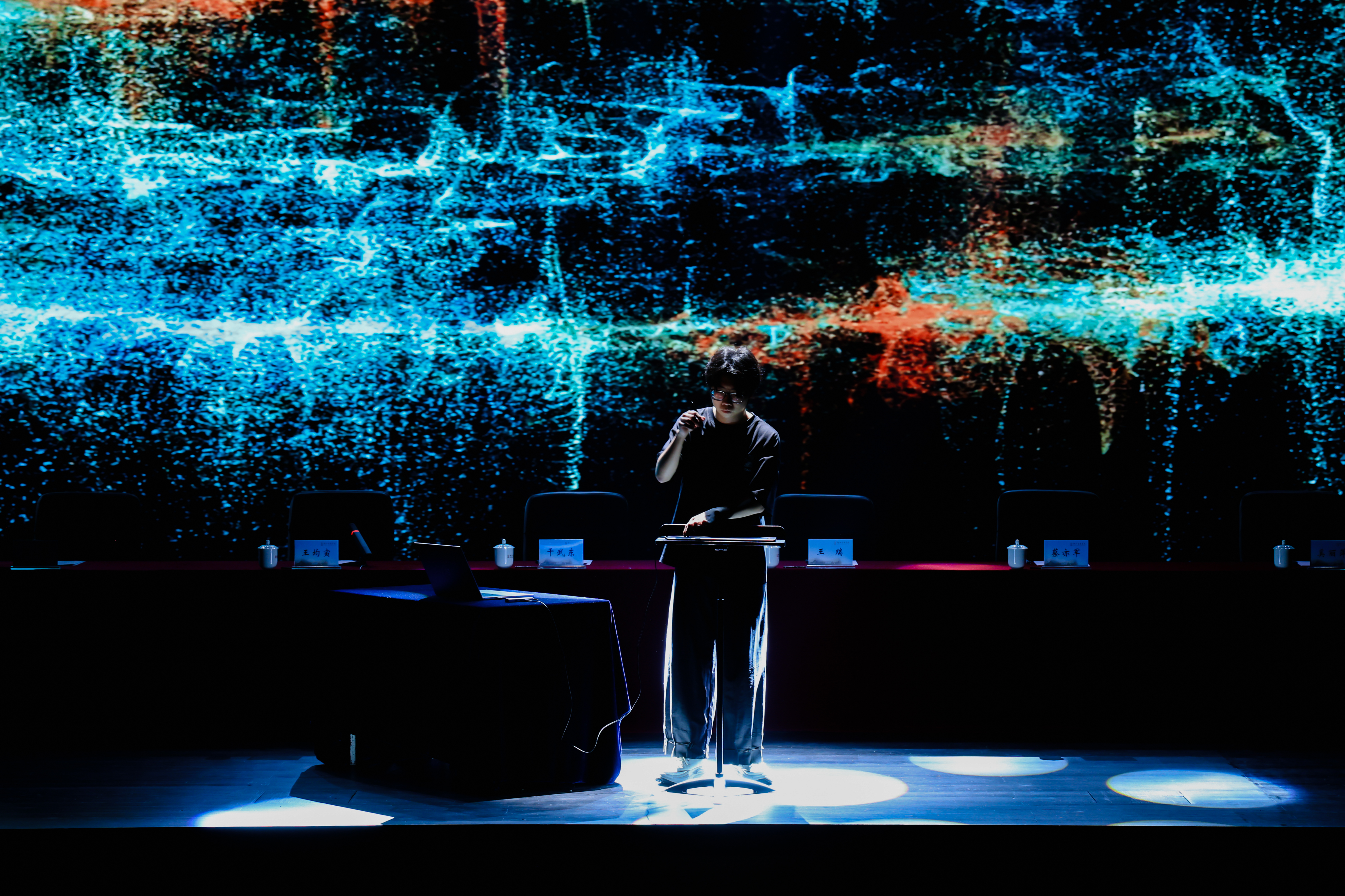 典礼前,音乐工程系学生带来交互视听表演《缘因·弦起》,戏剧系“绽梨越华”组合带来戏曲乐器演奏(越剧)《王熙凤大闹宁国府》。