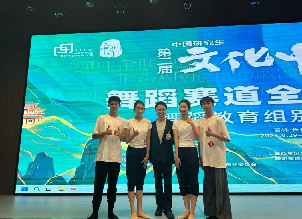 近日,由教育部学位管理与研究生教育司指导,中国学位与研究生教育学会和中国科协青少年科技中心联合主办,东北师范大学承办,全国艺术专业学位研究生教育指导委员会学术指导的第二届中国研究生“文化中国”两创大赛(舞蹈赛道)全国总决赛圆满落幕。本次大赛中,舞蹈学院2023级研究生周子敬创作编排的群舞作品《烟波晚唱》荣获舞蹈创作组一等奖。